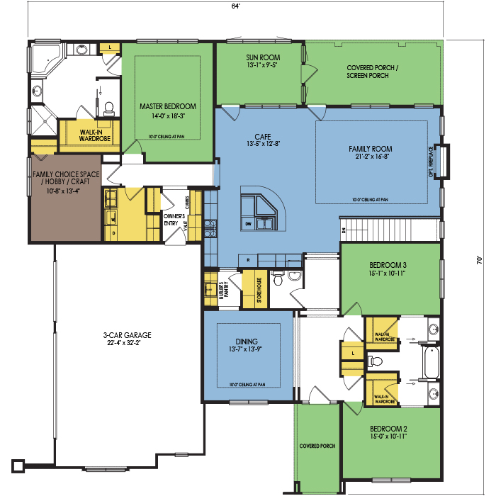 A part of our dream series, the tamarack floor plan features 3 bedrooms and 1.5 bathrooms with a foot print of 44x30 feet and 1342 total square feet of living space.